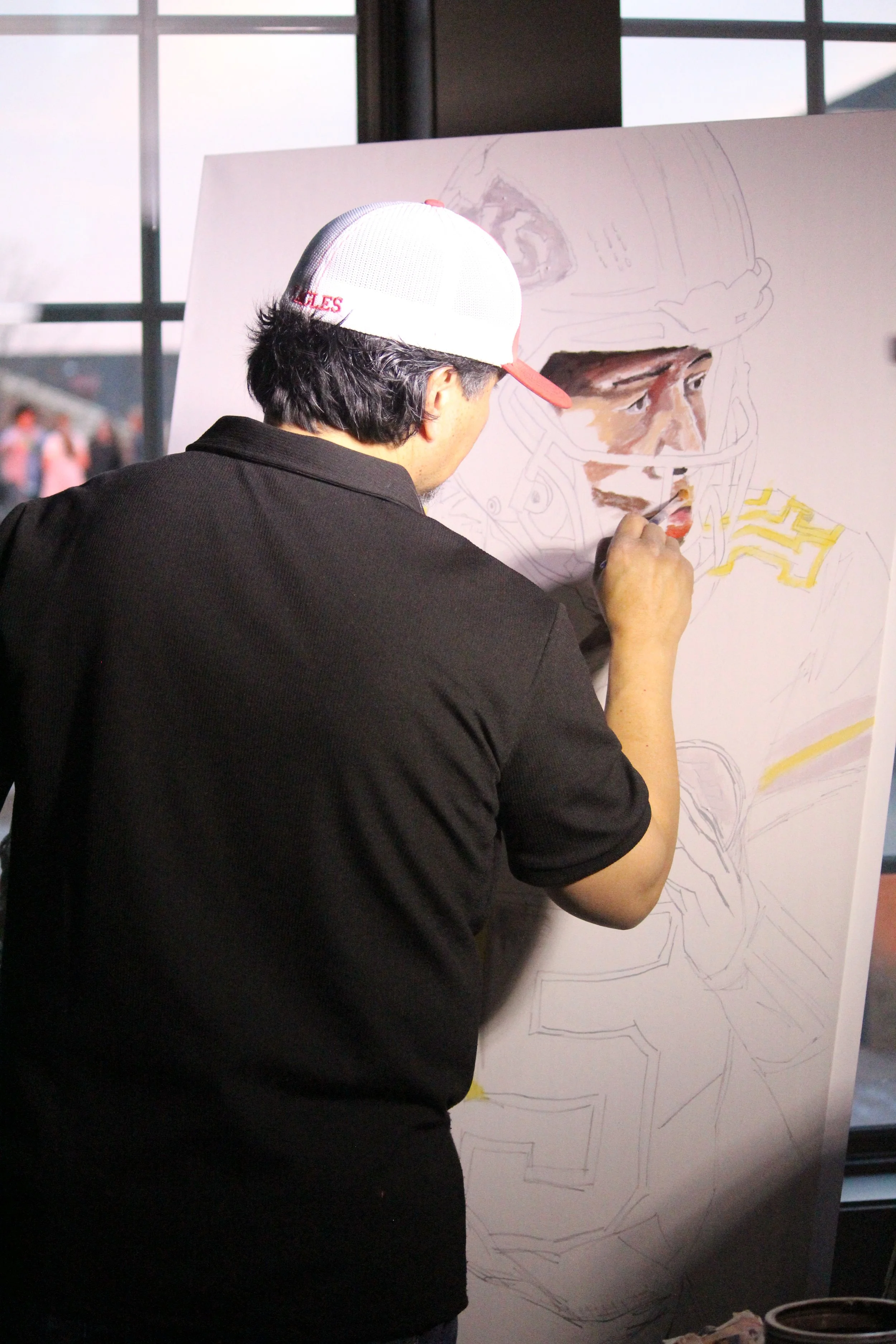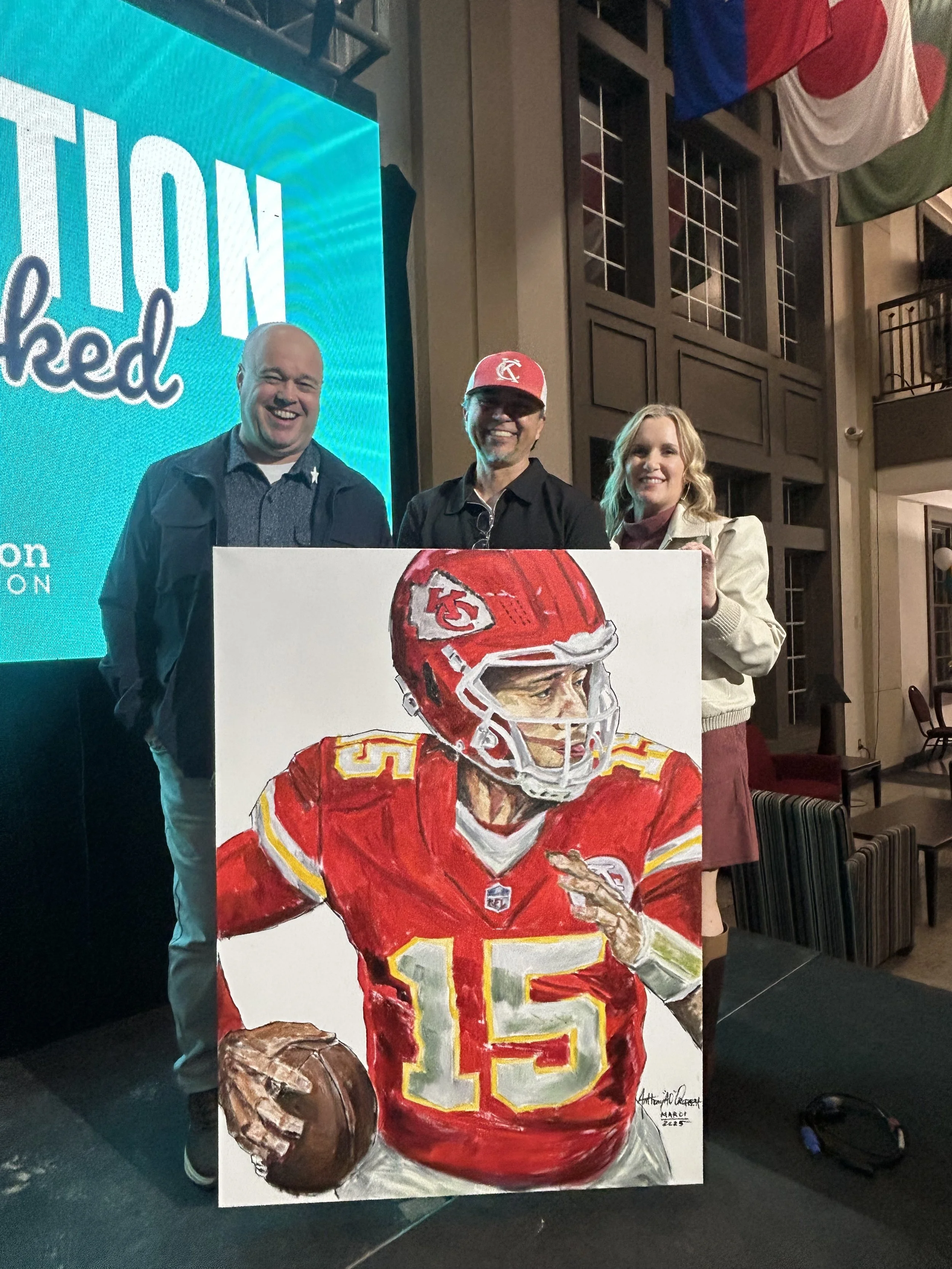 Anthony Orpeza of AOART5 created a one-of-a-kind masterpiece of Patrick Mahomes live before our eyes! We set a new record for his highest live auction bid, with the painting selling for an incredible $5,800! Even more exciting, AO has generously agreed to donate 3% of all commission work through the end of 2025 to the Liberty Education Foundation.